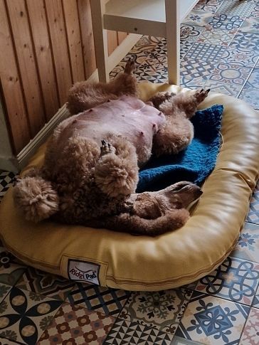 Meine lieben Leute, ich sage es euch, so eine Schwangerschaft ist kein Zuckerschlecken. Muddi meinte doch die Tage, ich müsste mal einen Termin beim hauseigenen Pudelstyler bekommen und eh ich mich versah, saß ich auch schon im feuchten Nass. Brrr, das braucht kein Mensch. Wie gut, dass die kleinen Löckchen in meinem Bauch eh auf Tauchstation sind und eine immer gleichbleibende Temperatur genießen können. Bei mir war es eher frisch und als ich endlich wieder trocken war, wurde es direkt Zeit für ein Nickerchen. Ich kann aber auch ganz klar sagen, schlafen und essen stehen bei mir im Moment ganz hoch in der Gunst, denn lange währt meine Ruhe nicht mehr. Die Kleinen sind jetzt schon fast perfekt, es fehlt nur noch ein wenig Speck auf den Rippen und dann sind sie bereit für einen aufregenden Start außerhalb ihres Tauchbeckens. Für mich war an dem Tag noch nicht Schluss, ich bekam noch eine dickebauchschwangerschaftsfreundliche Frisur verpasst. Und dass Kelly auch noch auf den Frisiertisch musste, war nur ein kurzer Trost, denn kaum war sie schick, hat Muddi schon wieder den Koffer gepackt und ist einfach mit ihr zu einem aufregenden Sportwochenende verschwunden.