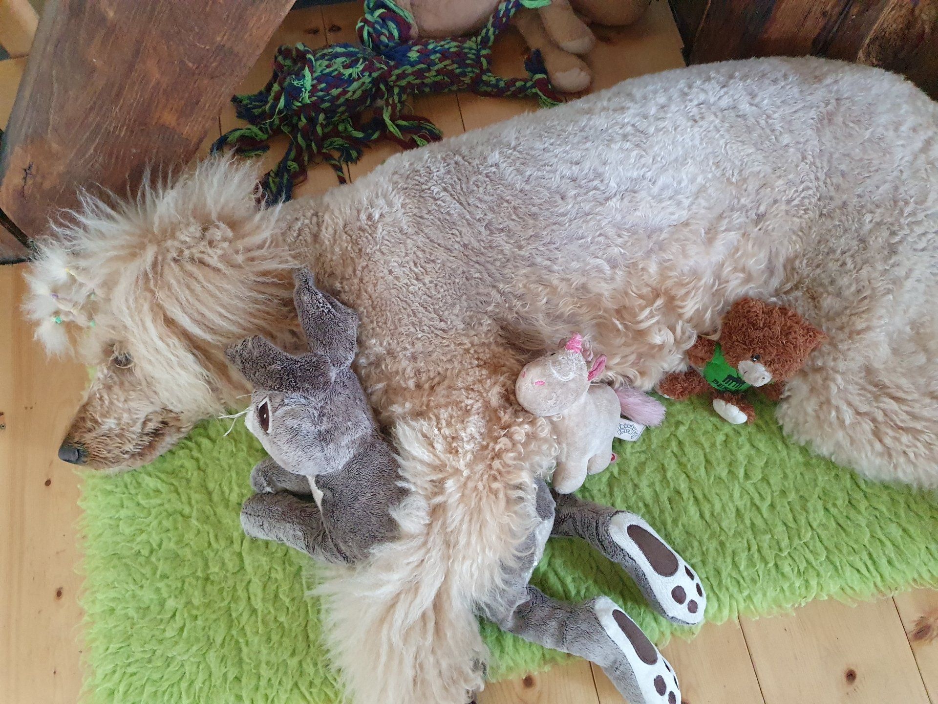 Wir haben uns ganz bewusst für eine Wiederverpaarung mit dem selben Rüden aus dem letzten Jahr entschieden, da der Nachwuchs sich wirklich fantastisch entwickelt hat und ihre neuen Familien sehr glücklich mit ihren Lockenköpfen sind. Hinzu kommt, das uns Kaspian diesen Sommer für ein paar Tage besucht hat und er uns noch einmal komplett mit seinem Charakter, seinem Temperament und seiner freundlichen Art überzeugt hat.