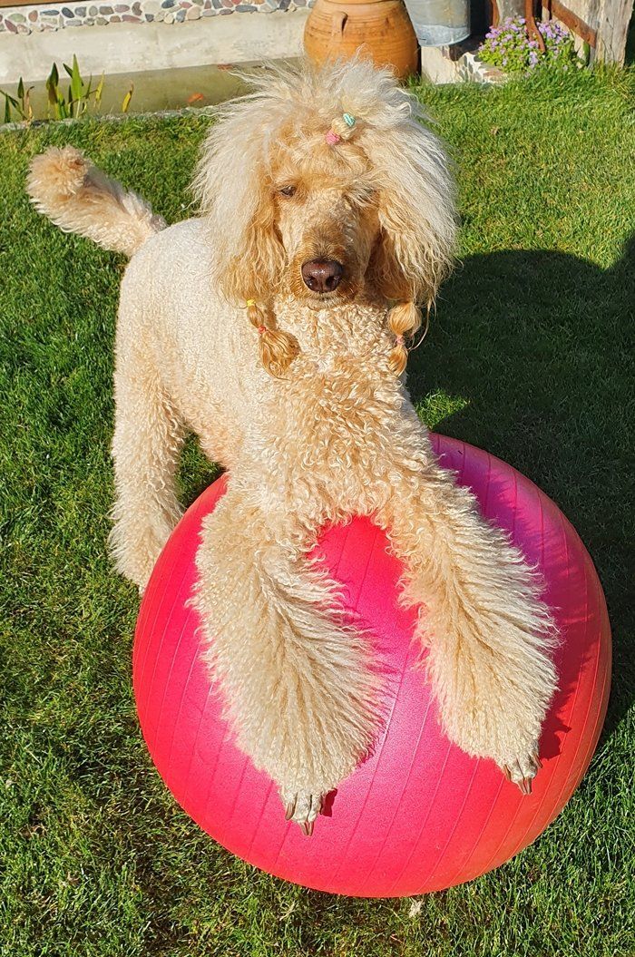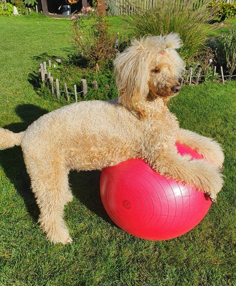 Ich mache morgens immer ein wenig Schwangerschaftsgymnastik mit meinem großen pinken Ball, dann döse ich meistens ein wenig auf meinem Lieblingsplatz im Garten und nachmittags spielt Muddi oft noch mit mir Ball fangen. Hört sich doch ganz gut an, oder...aber ich merke gerade...da knurrt was in meinem Bauch...ne, kein Baby, ich hab schon wieder Hunger. Ich geh mal und organisier mir einen Snack...bis bald ☺☺