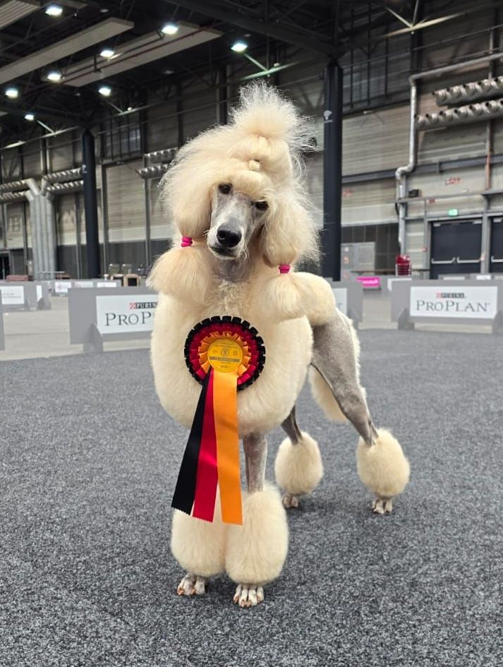 Im Rudel sorgt sie immer für gute Laune und gute Harmonie. Fremden Hunden und Menschen gegenüber ist sie offen und neugierig und auf den großen Ausstellungsbühnen im In- und Ausland läuft sie immer mit viel Spaß, Souveränität und Stolz in die Runde.
