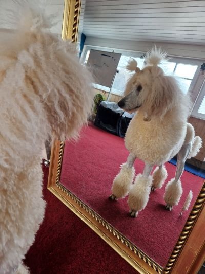 Sie zeigt sich sehr souverän und angstfrei allem Neuen gegenüber und bringt eine gehörige Portion Energie mit, die mich sicherlich noch herausfordern wird. Genau so lieben wir die Pudel, temperamentvoll aber gut zu lenken und für jeden Schabernack zu haben.