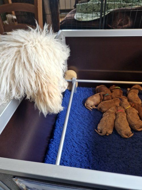 Heute sind wir vierzehn Tage jung und es hat sich schon einiges getan. Das wichtigste zuerst : Wir haben Augen !!! O.K. da waren die natürlich auch schon vorher aber jetzt sind sie geöffnet und so langsam wird der Blick von Tag zu Tag schärfer. Die Chancen stehen also gut, dass wir so langsam unterscheiden können, dass aus den Öhrchen und Näschen unserer Geschwister keine Milch rauskommt, sondern nur aus Mamas Zitzen. Und natürlich wird jetzt auch alles andere spannender, die Welt wird von Tag zu Tag größer.