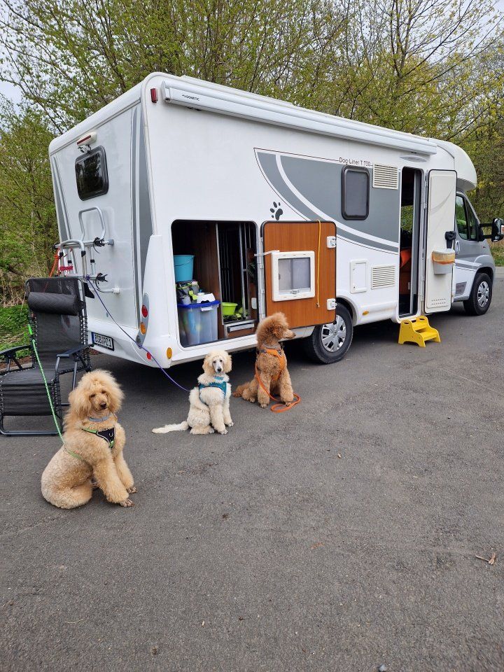 Für unseren Nachwuchs, die Torte, ist das die erste große Reise und wir sind begeistert wie toll sie das meistert. Alle drei Pudel sind trotz der fremden Umgebung souverän, neugierig und für jedes Spiel zu haben.