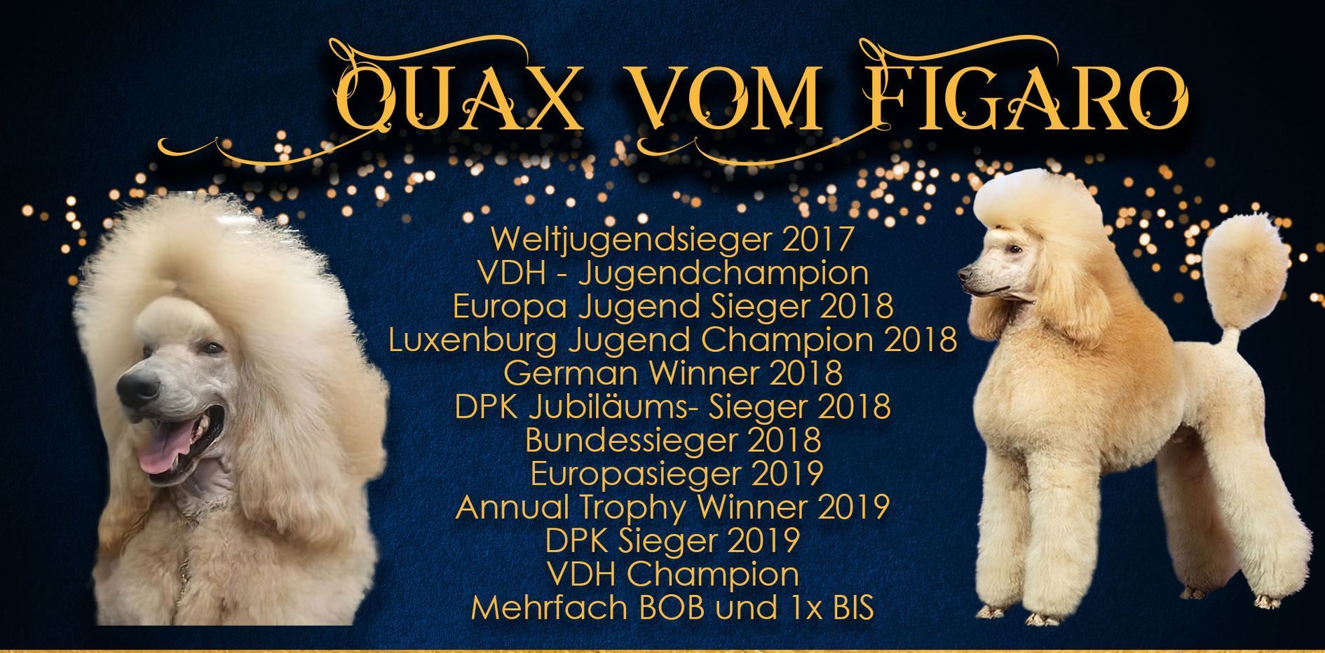 Als die Tür aufging, begrüßte uns ein beeindruckender, stattlicher Rüde in einem wunderschönen mittleren fawn. Herrchen und Frauchen hatten kaum Zeit uns zu begrüßen, denn Kelly war sich sofort sicher, das ist mein Auserwählter und so kam es, wie es kommen sollte. Danach bekamen wir dann bei einem Kaffee die Gelegenheit Quax und sein Rudel näher kennen zu lernen. Quax zeigte sich als ein sehr offener freundlicher Rüde, der sofort Kontakt zu uns suchte und sich gerne von uns knuddeln ließ. Er hat ein tolles, korrektes Gebäude, mit ordentlich Substanz und trotzdem edel. Genau die richtige Kombination zu unserer Kelly. Quax ist schon ein sehr erfahrener Rüde mit vielen Nachkommen und großen Erfolgen auf den Shows der Welt.
