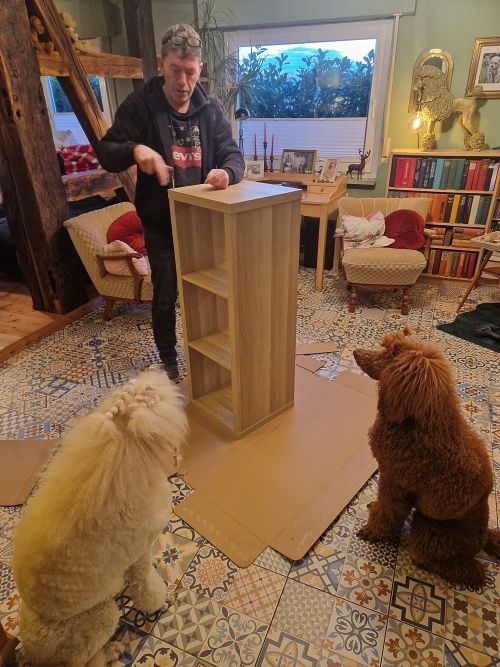 Meine Mama hat mir, als ich noch ganz jung war, erklärt dass Muddi das einfach machen muss, also quasi wie ein Zwang. So wie Mama einfach immer ihren Ball jagen muss, das ist bei ihr auch ein echter Zwang, so muss Muddi wenn wieder Minizimtschnecken im Anmarsch sind, immer unsere Zimmer renovieren. Ich habe dann erst mal die kleine Gugelhupf an meine Seite geholt und ihr das erklärt, also das mit dem Nestbautrieb und das mit den Bienen und Blumen... naja, eben alles was sie langsam mal wissen sollte, macht ja sonst keiner. Das Verrückte an der ganzen Sache mit dem Nestbautrieb ist ja, dass Herrchen da immer voll mitmacht, obwohl er doch ein Rüde ist? Versteh einer die Menschen....