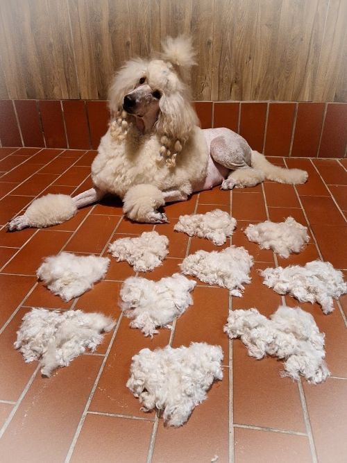 Heute war der gefürchtete Tag gekommen. Natürlich wusste ich, was auf mich zukommt, schließlich bin ich Topmodel und da weiß jeder, dass irgendwann der Tag des großen ''Umstylings '' kommen wird... Aber keiner hat mir gesagt, dass ich nachher komplett barbusig bin. Ihr könnt euch nicht vorstellen, wie peinlich mir das war und wie kalt es jetzt durch meine Beine weht. Muddi sagt, das muss so sein, sonst bleiben meine Babys da mit ihren kleinen spitzen Krallen immer hängen. Ne, schon klar, deswegen geht Frau Wolf ja auch immer kurz vor der Geburt ihrer Welpen zum Wald- und Wiesenfrisör...ha ha. Na gut, sie hat vielleicht keine Locken, aber trotzdem spinnen die Zweibeiner doch ein bisschen, oder? Doch was tut man nicht alles für seinen Nachwuchs, und darum geht es ja schließlich, und wenn's Muddi damit besser geht, von mir aus, dann eben Topmodel mit Bauchglatze.