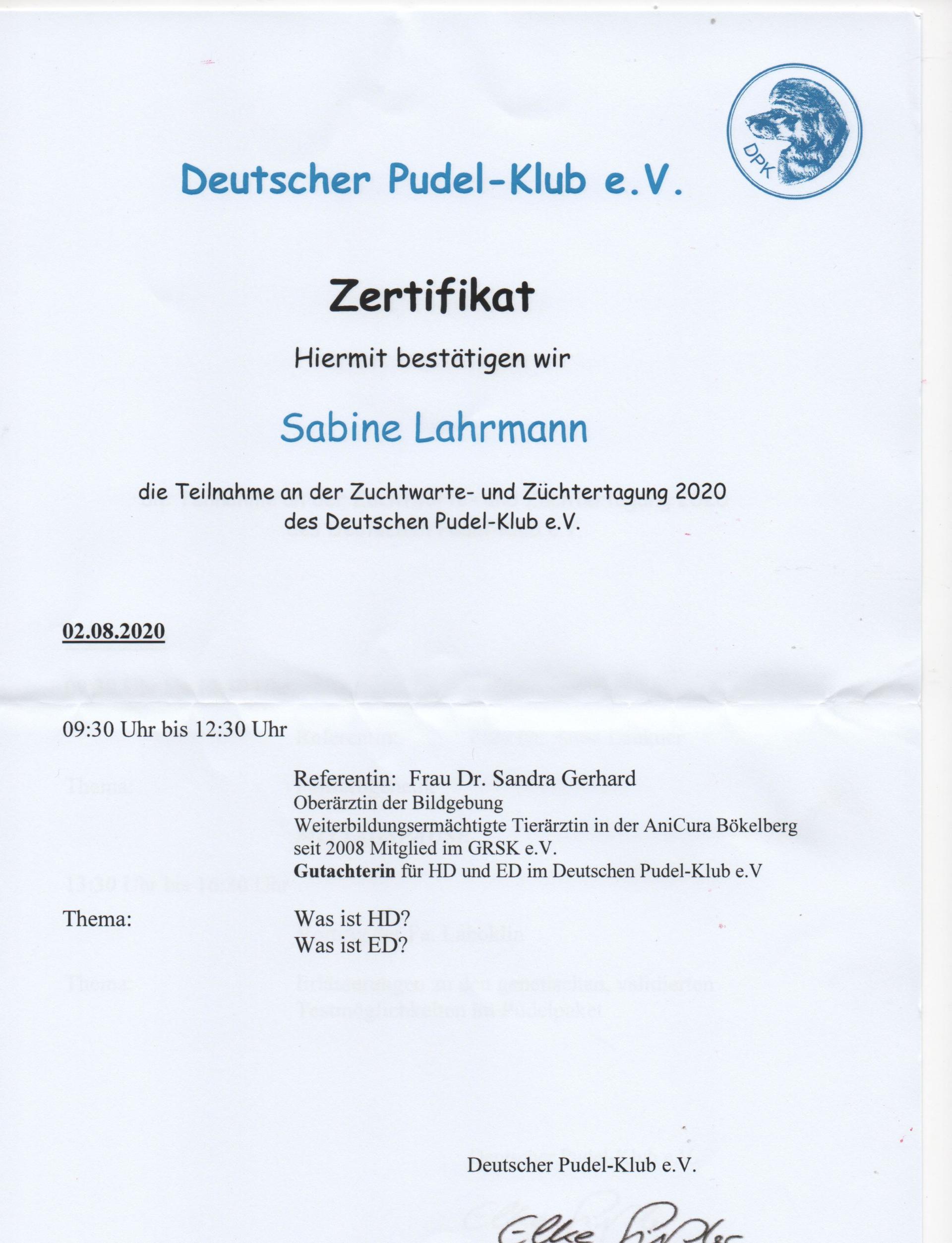 Natürlich versuchen wir immer, unser Wissen rund um den Hund zu vertiefen und uns weiter zu bilden. So habe ich in meinem Leben schon viele Fortbildungen und Seminare rund um das Hundeleben und die Hundezucht besucht, so wie ein zweitägiges Seminar der VDH Akademie in Dortmund.